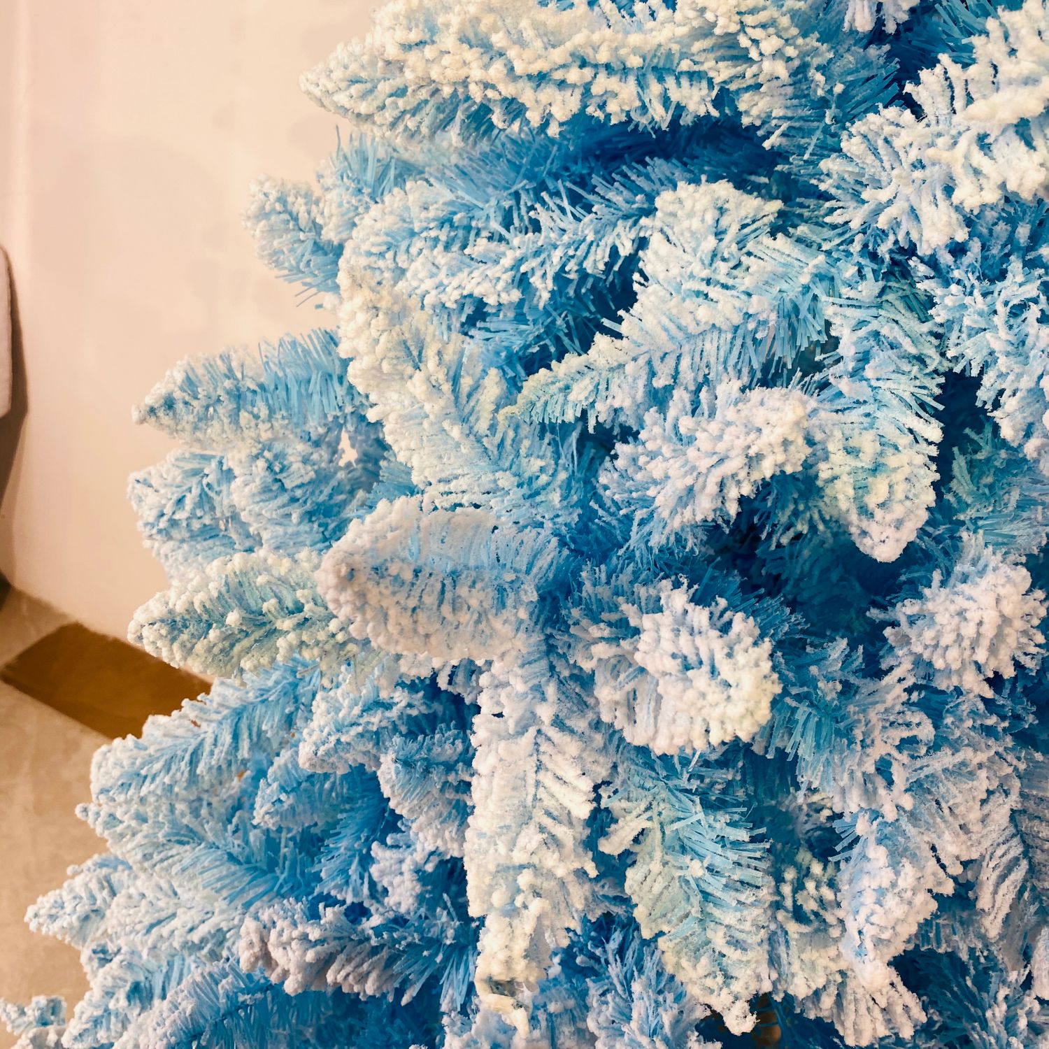 Энэхүү гацуур нь дан PVC материалын мөчиртэй бөгөөд мөчир нь цайвар цэнхэр өнгөтэй, хиймэл цасаар чимэглэсэн загвар.